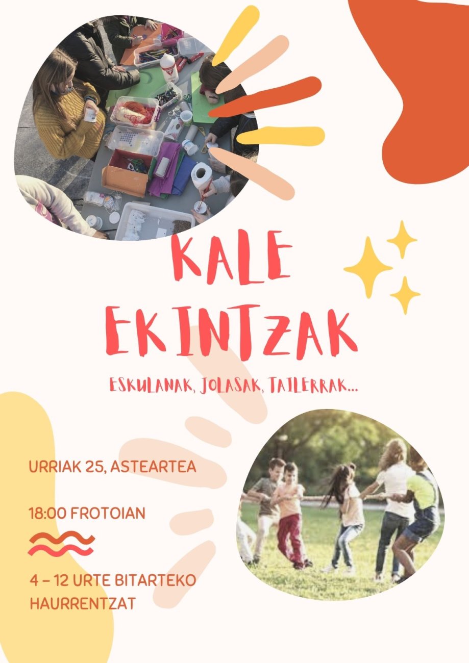 Datorren arteartean hasiko dira kaleko ekintzak berriro ere. Asteartero bilduko gara jolasak, eskulanak, tailerrak eta abar egiteko.