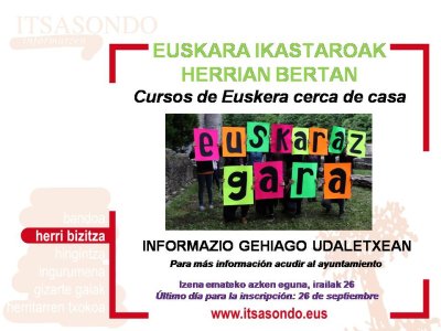 Si teneis interés de aprender Euskara podeis venir al ayuntamiento y aquí os ayudaremos con la inscripción.