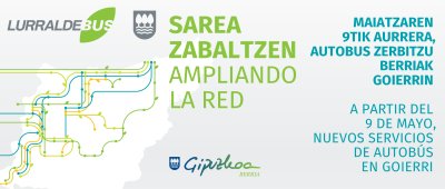 Dakizuen bezala maiatzaren 9an Lurraldebus autobus zerbitzu berria martxan jarriko da Goierrin. Ordutegiak eta informazio gehiago nahi baduzue linkatu hondorengo helbidean www.lurraldebus.eus.
